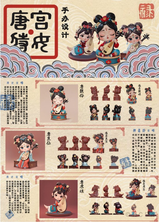 作品简介:“唐宫倩影” 系列手办,从唐代文化中采撷灵感,借现代潮玩形式,复活唐宫雅韵,三款各有特色。