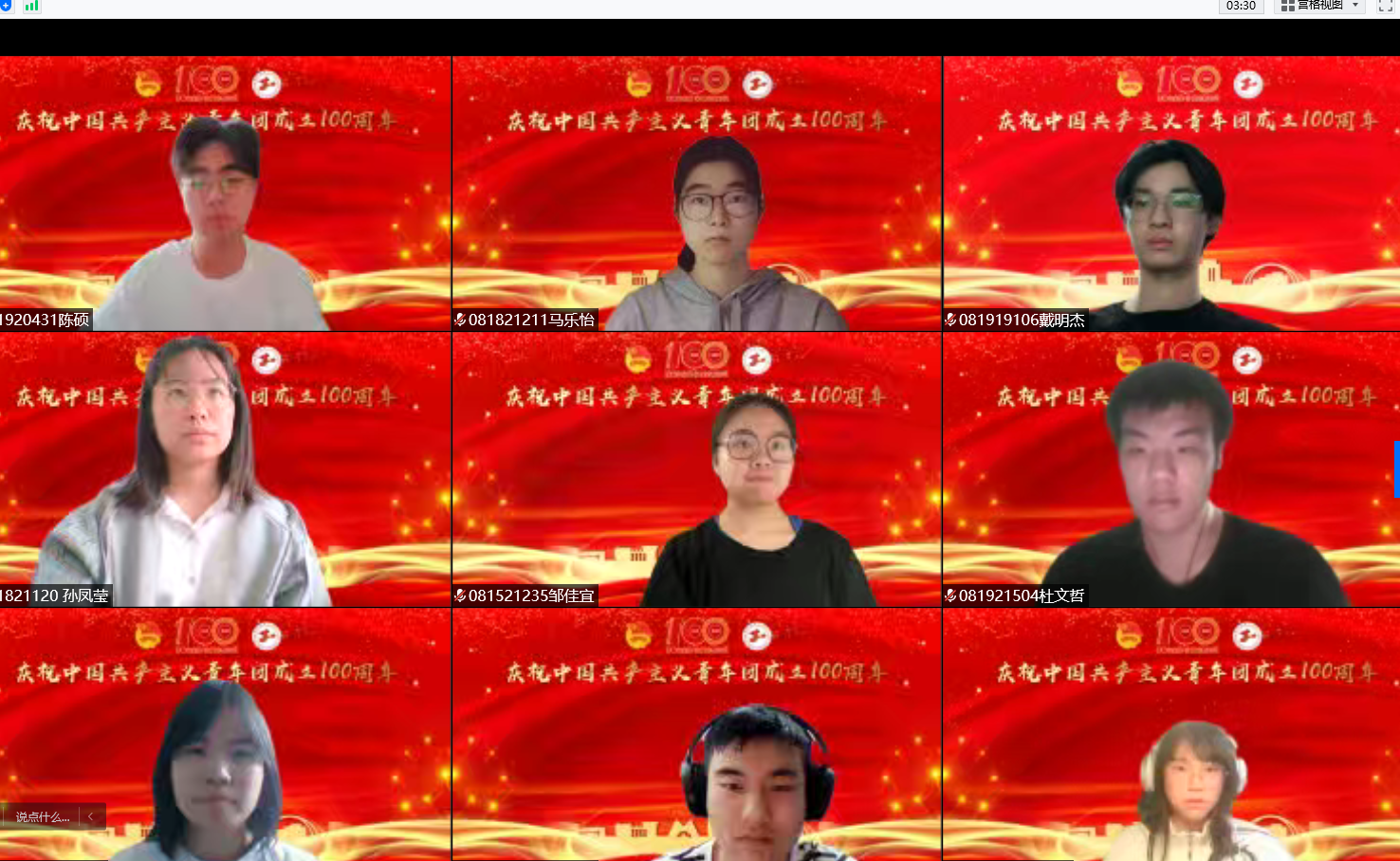 0814204团支部组织班级同学在线上集中观看大会直播。0814204团支部在2021-2022学年荣获校五四红旗团支部标兵集体,通过学习贯彻习近平总书记在庆祝中国共产主义青年团成立100周年大会上的重要讲话精神,进一步加强思想建设,切实增强团支部的引领力、组织力、服务力,团结班级同学,共同成长为有理想、敢担当、能吃苦、肯奋斗的新时代好青年!