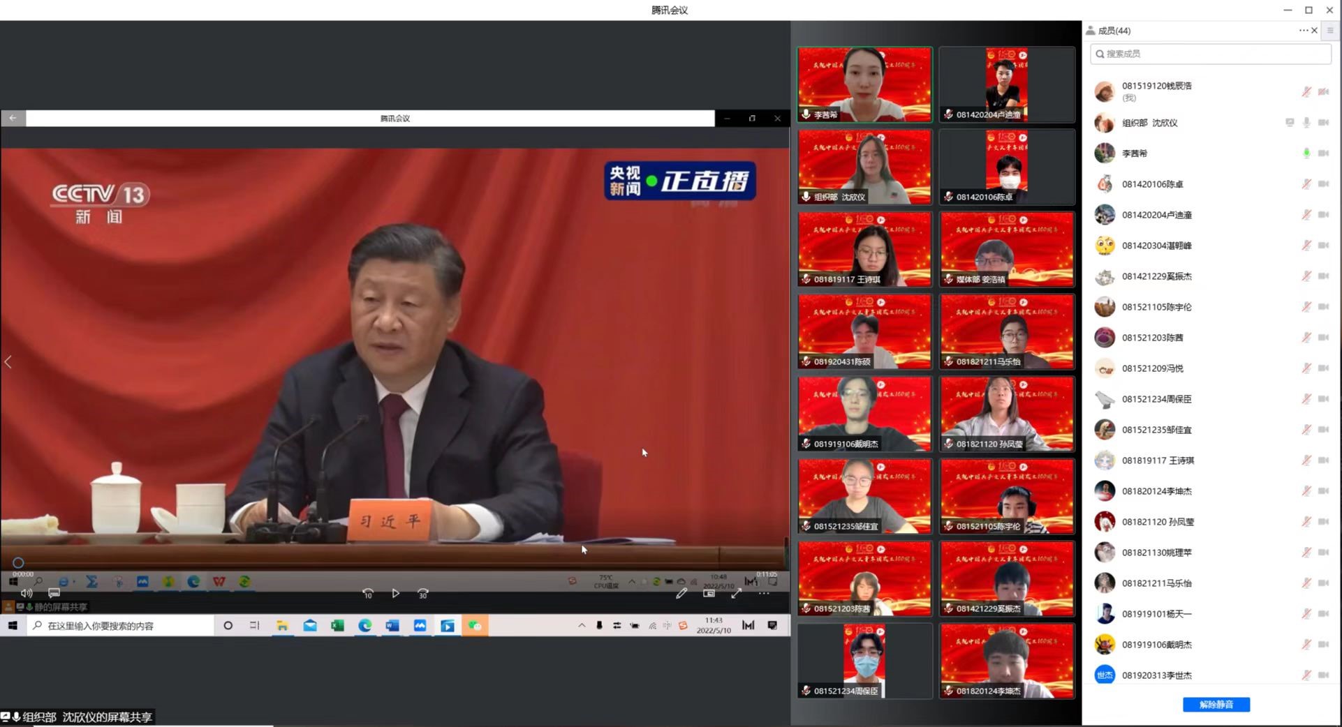 5月10日上午,航空运输学院(飞行学院)通过线上腾讯会议形式组织全体团员干部、学生会成员、青年学生集中收看庆祝中国共产主义青年团成立100周年大会,聆听习近平总书记重要讲话。