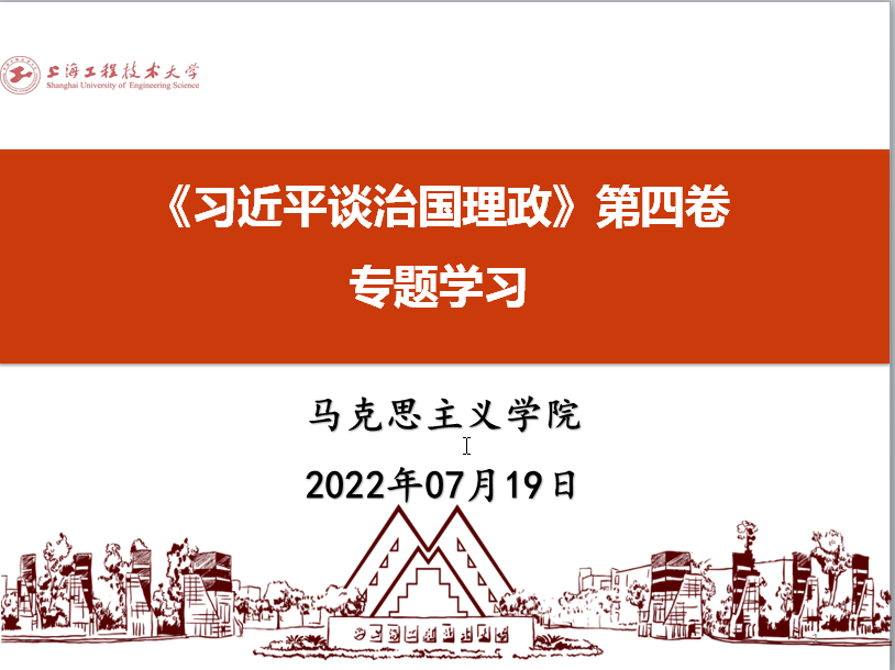 7月19日下午,马克思主义学院召开党总支中心组(扩大)专题学习会,学习《习近平谈治国理政(第四卷)》,会议由党总支书记许传宏主持,院长刘志欣领学,学院党总支成员与各支部书记等参加学习。