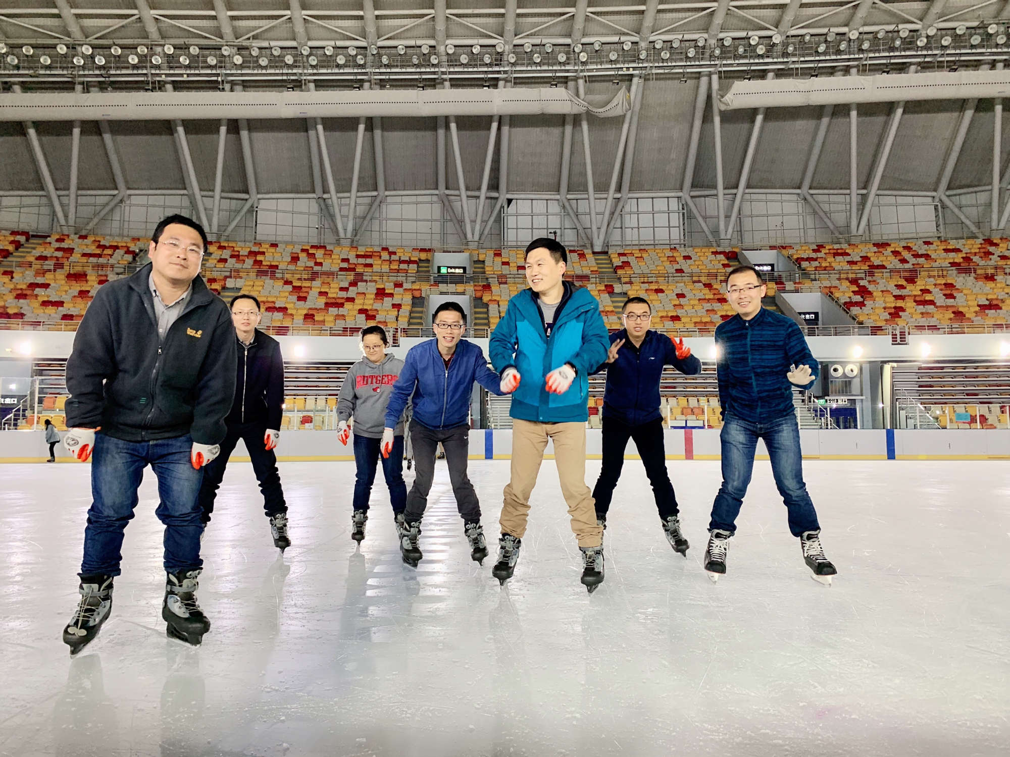 为响应习近平总书记在申办2022年北京冬奥会时提出的“三亿人参与冰雪运动”的号召,同时也为城市轨道交通学院教师能够更好地了解和参与滑冰运动,4月16日晚,城市轨道交通学院在松江大学城滑冰馆组织了“冰动飞扬,健康你我”的滑冰活动。滑冰运动能够丰富学院教师的业余文化生活,营造积极向上、百花齐放、健康文明的学院气氛,增进了教师之间的联系与沟通,陶冶了教师们的高尚情操。冰场上,有滑冰经验的老师向初学老师耐心讲解滑冰技巧和要领,初学老师在其指点下慢慢适应冰场,从扶墙走圈到开始滑动起来,大家坚定执着地在冰面上滑动,耐力与希望在白色的冰道上凝聚。力量、信念、拼搏、奋斗,在遥远的前方上渐渐明亮!通过近两个小时的滑冰实践,大家学习掌握了滑冰的基本技术动作以及相关注意事项,也感受到了冰上运动所带来的乐趣。冰动飞扬,健康你我,释放活力,挑战自我,战胜自我,以更加飒爽的精神面貌迎接朝阳!
