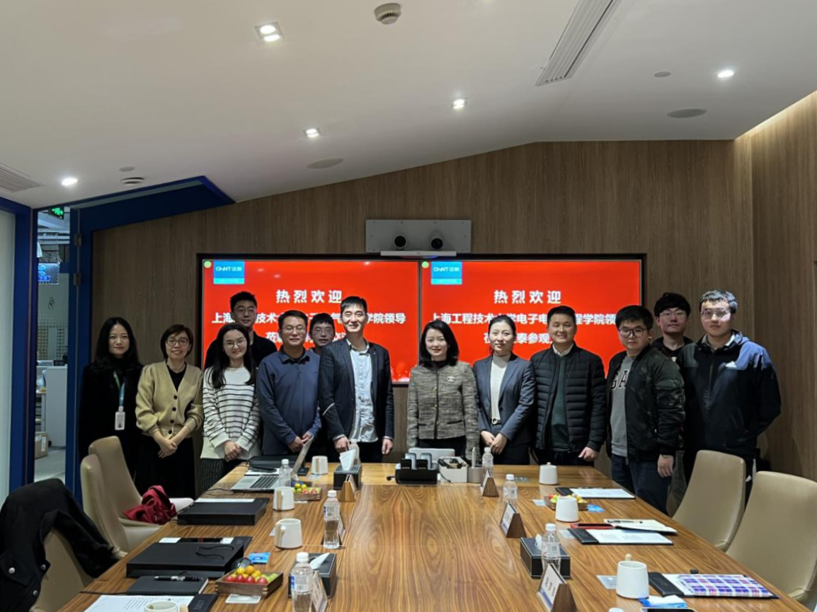 正泰电器低压研究院电子技术部副总监朱俊杰,低压研究院科技管理部经理邓红平,低压研究院人力资源部经理肖健,上海正泰智能科技有限公司杨燕、正泰国际 HR贾珞等对学院一行表示了热烈的欢迎。