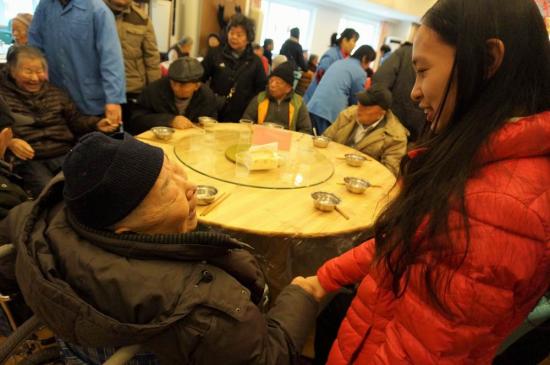 观看表演的同时,学生党员们还与老人们聊起家常,询问他们的身体、生活等情况,并嘱咐老人们要保重身体,注意适时添衣保暖。 “天嘎冷,那还特意跑的来陪阿拉一道吃年夜饭,心里交关开心。”申春花奶奶拉着身边志愿者的手说道。“爷爷奶奶都很亲切,与他们在一起就像在自己的爷爷奶奶身边一样。虽然时间紧,要放弃休息时间排练节目,但能够通过自己的微薄之力,为老人们带来快乐与温暖,我感觉很荣幸。”志愿者王纯婕说。