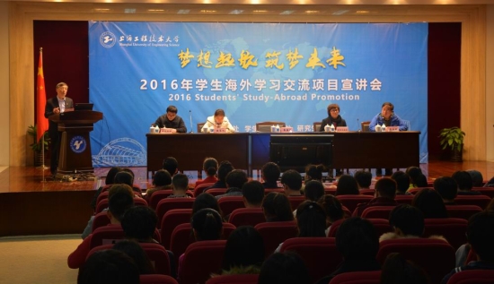 为进一步推动我校国际化教育发展,提高学生国际视野,培养更多通晓国际规则、能够参与国际事务、具有跨文化交流能力、适应上海经济社会对外开放需要的国际化人才,3月8日下午,国际交流处在图文信息中心第二报告厅举行了“梦想起航 筑梦未来”2016年学生海外学习交流项目宣讲会。学校副校长鲁嘉华,国际交流处、教务处、学生处和研究生处相关领导、海外院校代表和各学院师生出席了宣讲会。学生们热情高涨,气氛热烈,会场上座无虚席。
