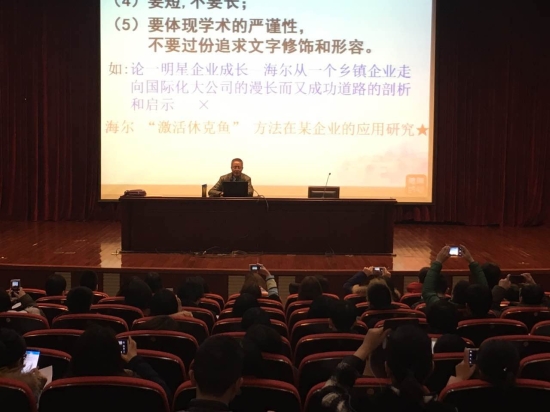 吴清书记首先指出毕业论文是所学知识的综合运用,建议同学们将完成毕业论文与实际工作相结合,学以致用,进一步巩固和掌握所学专业理论知识,不断提升业务素质。随后,上海市教学名师陈心德教授为同学们分别做了题为《如何撰写毕业论文》、《如何写好毕业论文》的动员指导,他从合理选题、明确论文写作目的、掌握完成进度、紧扣论文基本框架及严格书写规范等方面进行了详细讲解,同学们认真聆听,不时地做记录,认为此次开题会实用、有效,受益匪浅。