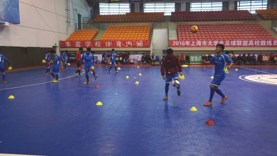 3月16日下午,上海市五人制足球教练员培训在我校体育馆举行。本次培训由上海市校园足球联盟主办,上海市20余所高校的五人制足球教练员齐聚我校体育馆,听取了俄罗斯五人制足球教练德米特里.库楚诺夫的讲座,并且参加了后续的五人制足球公开课。