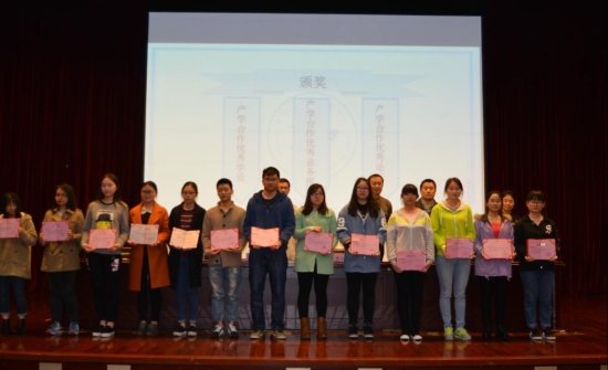 会上,于凯副院长宣读产学合作教育优秀学员、产学合作教育优秀业务报告作者、产学合作教育优秀论文奖的获奖名单并由主席台各位领导为获奖同学颁发奖状。