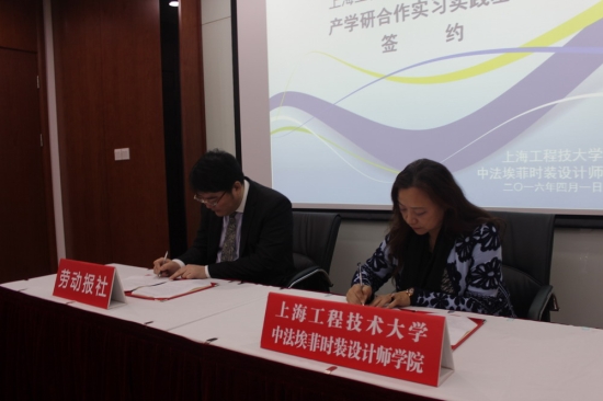 上海《劳动报》创建于1949年,是一份以广大职工群众为目标读者的综合性日报,也是上海地区第一家印刷彩报的报社。报业覆盖服务上海128个区县的工会网络组织体系。作为党的群众基础媒体,在业界享有较高的声誉。此次劳动报社选择与我校中法埃菲时装设计师学院建立产学研合作实习实践基地,意在双方长期夯实的产学研合作基础,亦是寄希望于双方在新媒体领域发展的继续深入合作。劳动报社党委书记邵新宇女士在致辞中提出,通过高校与社会企业间的产学研合作平台共建,实现校企合作人才孵化培养的双赢机制。以媒体产业服务社会与高校学科服务社会捆绑推进,将有利于实现企业的社会价值。