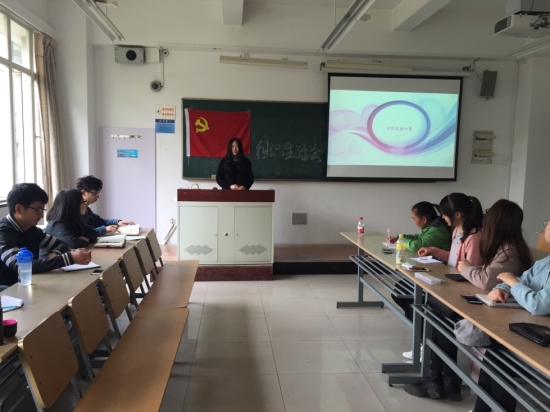 会议第二部分,学生党支部优秀毕业生党员申芝巾就求职经验做了一次分享演讲。她就求职面试、面试技巧和自身感悟三个方面进行分享。