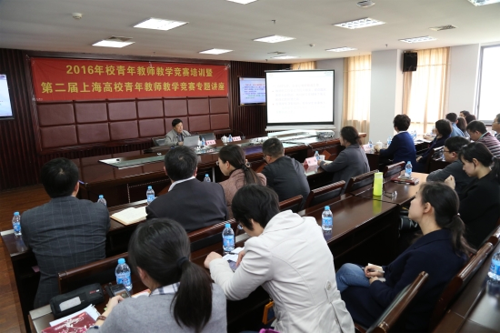 为进一步加强青年教师队伍建设,引导青年教师提高教学水平,激励全校青年教师教书育人、岗位建功。4月8日下午,国家级教学名师、华东理工大学黑恩成教授应邀来校做《做名副其实的优秀教师》和《迎接上海高校青年教师教学比赛》专题讲座。经过学院初赛,入围的57名青年教师在行政楼506会议室聆听了讲座。副校长鲁嘉华、教务处处长谢红、人事处处长缪行外、工会常务副主席沈海庆出席了本次活动。会议由副校长鲁嘉华主持。