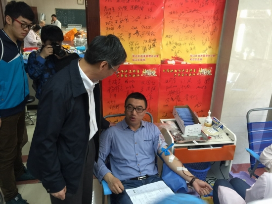4月15日上午,城市轨道交通学院李立明老师到上海市松江区血站参加无偿献血,这已经是李立明老师继本科和研究生阶段之后第三次参加无偿献血。学院党总支书记刘牧众、副书记万慧琳、院办主任钱鲁斌、学院工会主席李健等学院老师到现场对李立明老师进行慰问。李立明老师说:“无偿献血是爱心的体现,是无私的奉献行为,作为一名大学青年教师,我们应该做好我们自己力所能及的事情。”此次献血从前期报名开始,学院很多老师积极报名参加,充分展示了当代大学教师“心系社会,关爱他人”的风采,有利于弘扬中华民族的传统美德,树立高尚的道德情操,营造良好的大学文化,对推动无偿献血事业有着积极的意义。