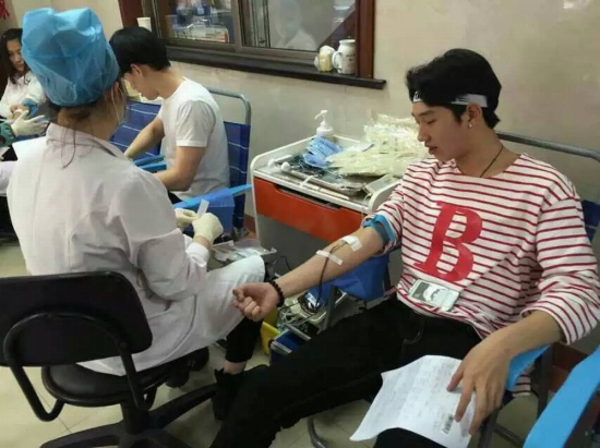 一下车,同学们便在老师和志愿者的引导下,在献血站前排起了一条长龙,纵使烈日当头,同学们的依然有序排队。为了对献血者和输血者负责,首先必须要对献血者进行身体检查及血液检测。在志愿者的引导下,大家自觉有序地进行各项检查,之后才进入采血间采集血液。在众多献血的同学中,服装学院学生朱起帆、龙玉廷、谢宗璇等同学已经是第三次参加无偿献血活动;姜浩、成欢欢、邵田静、周璞、徐仁华、许杨飞、龙文泓等同学已经是第二次参加无偿献血活动;退伍同学邓寿南、叶小寒、肖毅、施文锴、周以帆,展现了退伍不褪色的军人品质;模特表演班学生党员谷雪铭等同学,喊出了“要青春,要美丽,更要献血”的口号,强有力地击破了“献血会影响身材”的谣言。在此,向勇敢无私的献血者们致敬!