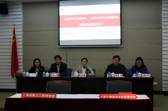 学校党委副书记、副校长裴小倩首先代表学校党委对上海凝聚力工程博物馆朱馆长一行的到来表示热烈的欢迎,对博物馆长期对我校工作的支持表示感谢,今天的签约让双方的“老朋友”的关系再次升级成“密友”,我校的注册地是在长宁区,所以今天的签约也是在区域化大党建中迈出的新的一步。她指出,博物馆和管理学院党委有着各自不同的党建资源,希望双方可以将这些资源充分整合、充分利用,为双方的学习教育提供更加丰富、更加生动的教材或案例,抓好“两学一做”学习教育;同时要抓住契机,发挥党史资政育人的最大功效。今年是我们党成立95周年,同时也是纪念红军长征胜利80周年。博物馆记录的党扎根基层,开展群众工作的历史,充分证明我们党的根基在人民,血脉在人民,力量在人民。希望双方可以发挥党史资政育人的作用,紧密结合新的时代特点加强学习,把党性教育寓于党史资政育人的过程中,大力弘扬党的理论联系实际、密切联系群众、批评和自我批评、艰苦奋斗等马克思主义学风和优良作风,对引导广大党员师生树立正确的世界观、人生观、价值观,不断加强党性锻炼和提高党性修养。最后她希望双方可以立足上海,帮助青年一代的师生更深入的了解上海,继承上海的城市精神,成为时代创新开拓的党员先锋。盼望双方共同发展、共有收获,协同共进。