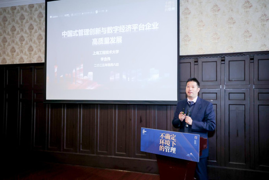 李含伟教授以“中国式管理创新与数字经济平台企业高质量发展”做演讲,针对中国共享单车在英国成功运营进行了实地问卷调查和访谈获得了第一手数据。研究完全采用了定量分析的方法,实证分析了中国共享单车企业在英国成功运营的因子及其因果关系路径,通过“解剖一只麻雀观测整个鸟类”的方式,构建了数字经济时代平台企业高质量发展的“四维”和“五为”的中国式管理模式,即在内容、连接、平台、价值观四个维度下的内容为本、连接为翼、平台为核、以核为贵、以公为引“五为”理论范式。这为数字经济时代平台企业中国式管理创新的理论发展和完善做出了贡献。