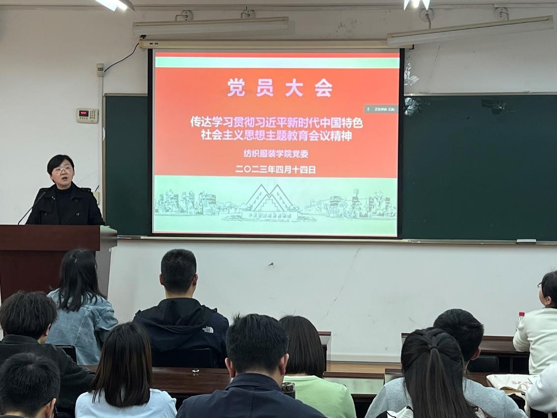 4月14日,纺织服装学院召开全体党员大会学习传达学校学习贯彻习近平新时代中国特色社会主义思想主题教育动员大会精神。学院全体师生党员参加会议,会议由学院党委书记朱君璇主持。