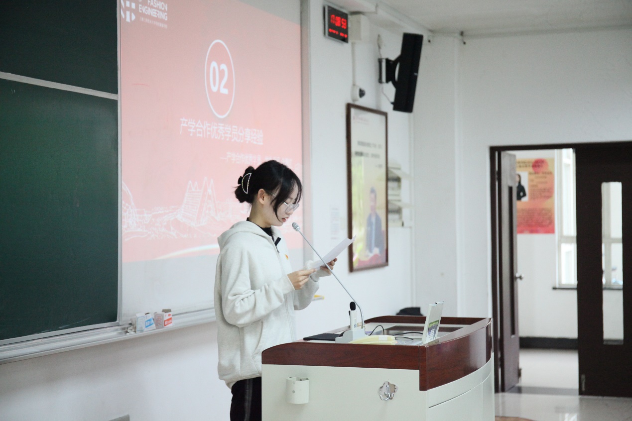 4月14日,纺织服装学院在教学楼F102举行2023年产学合作教育动员大会暨2022级新生产学合作理论教育,学院党委副书记谢志霞、产学合作辅导员刘朝芳、校友辅导员任凡、纺织工程专业辅导员闵语涵,2022年产学合作优秀学员以及2022级产学合作全体学生参加会议。