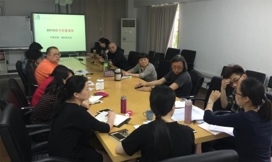 围绕学校 “迎评促建、办好专业、规范教学、提升质量”的主题,进一步提高教学质量,促进学院内涵建设和积极迎接学校本科教学工作审核评估,2016年5月6日,中韩多媒体设计学院为了进一步落实校教学质量月工作,在仙霞校区创意楼203会议室召开提升教学质量研讨会议。会议由唐幼纯院长主持,学院全体教职人员参加会议。