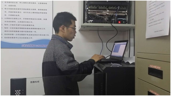 为了帮助后勤中心的工作人员尽快解决这一难题,从三月份时候开始,顾建荣所在的信息办团队就开始为此而积极寻找解决问题的办法。从整体布局到硬件的安装,还有软件的调试,顾老师的团队一干就是近2个月。宿管中心空间并不大,为了不影响工作人员的正常工作,他时而将笔记本架在服务器上就开始操作,时而找个凳子,把双腿当做桌子紧张调试。“小顾,到桌子上来弄吧!”他却腼腆着:“没事没事,我习惯了,很快就好。”这一投入就是几个小时。