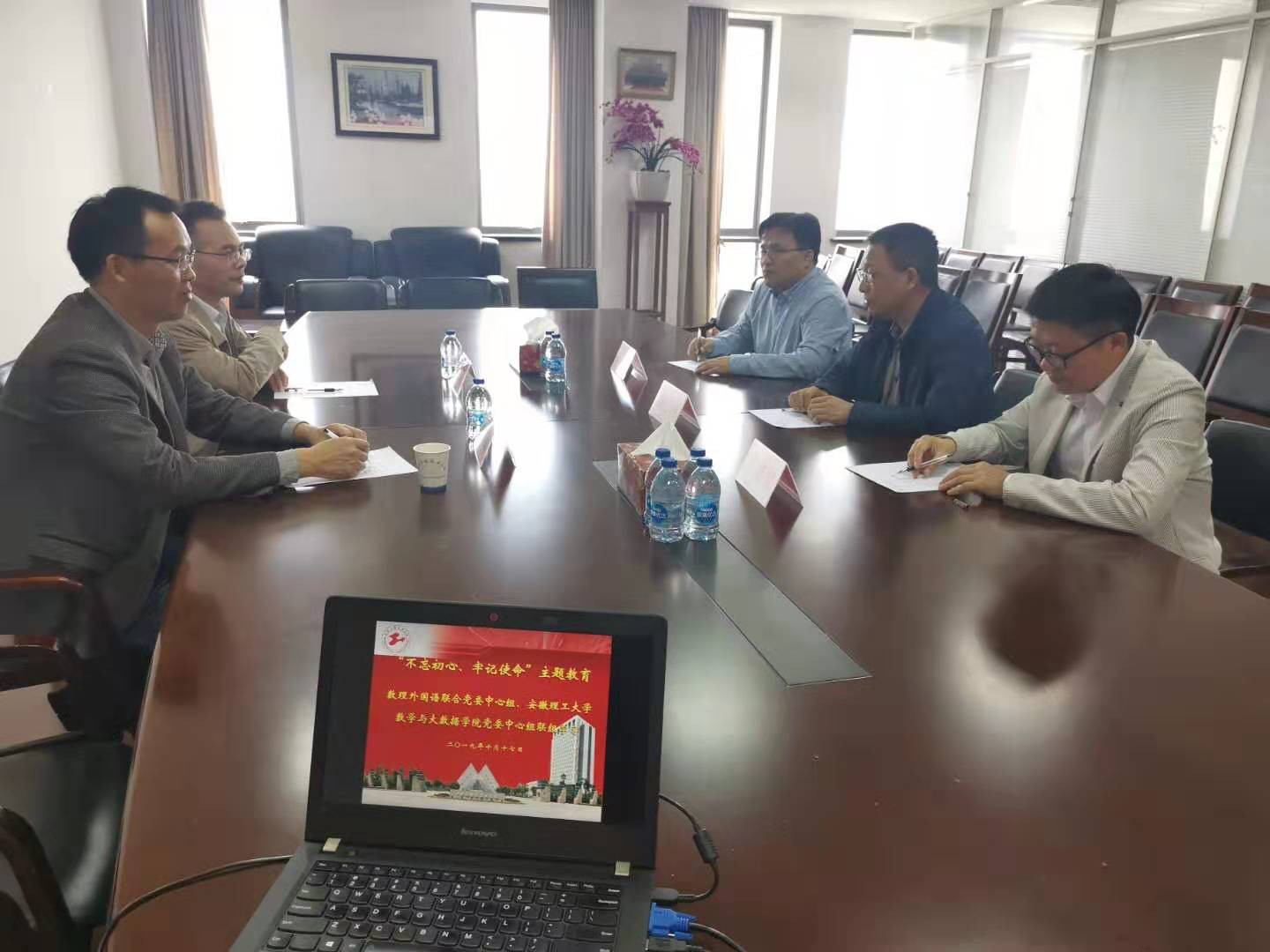 10月17日上午,安徽理工大学数学与大数据学院党委书记冯定昌、副院长李德权一行来我院开展调研交流。数理与统计学院院长殷志祥、副院长王国强、吴建宝参加座谈会。