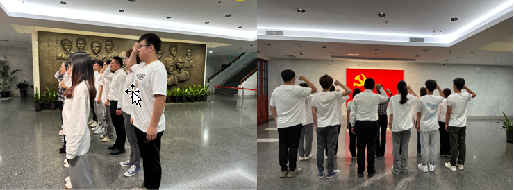 “我志愿加入中国共产党,拥护党的纲领,遵守党的章程……”面对鲜红的党旗,在领誓人程玉莲副书记的带领下,所有党员庄严宣誓。一字一句,神圣豪迈,坚定铿锵的誓词强烈震撼着每一位党员。在纪念馆,党员们跟着讲解员,一路瞻仰,一路学习,循着前辈来时的路,青年党员们与“同龄人”对话,看盏盏星火何以划破寂寂暗夜,回顾瞻仰党员前辈为人民解放、民族复兴的思想觉醒与上下求索。与纪念馆隔街相望的是中共一大会址,一个不足18平米的小小客堂却见证了一个伟大政党的诞生。一比一还原的会场布置让党员们仿佛置身于当年的会议现场,代表们勾勒着共产主义的模样,心中满是救国济民的赤诚。