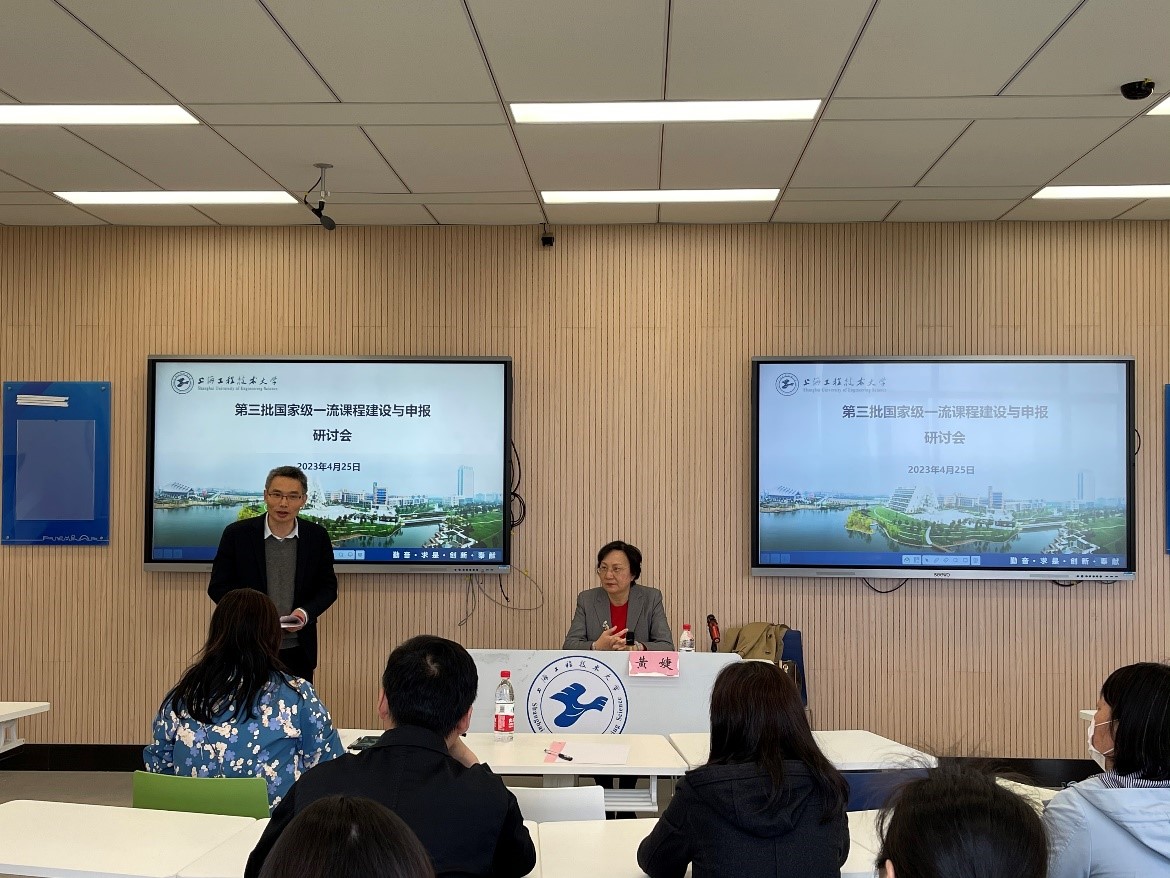 为贯彻落实教育部一流本科课程“双万计划”,深入推进我校一流课程建设,做好第三批国家级一流课程申报准备工作,4月25日下午,学校在教学楼B506开展主题为“建设一流课程,提高人才培养质量”的专题研讨会。华东理工大学教务处处长黄婕教授,我校市一流课程负责人及团队成员、教务处相关人员共40余人参加会议,会议由教务处副处长金晓怡主持。