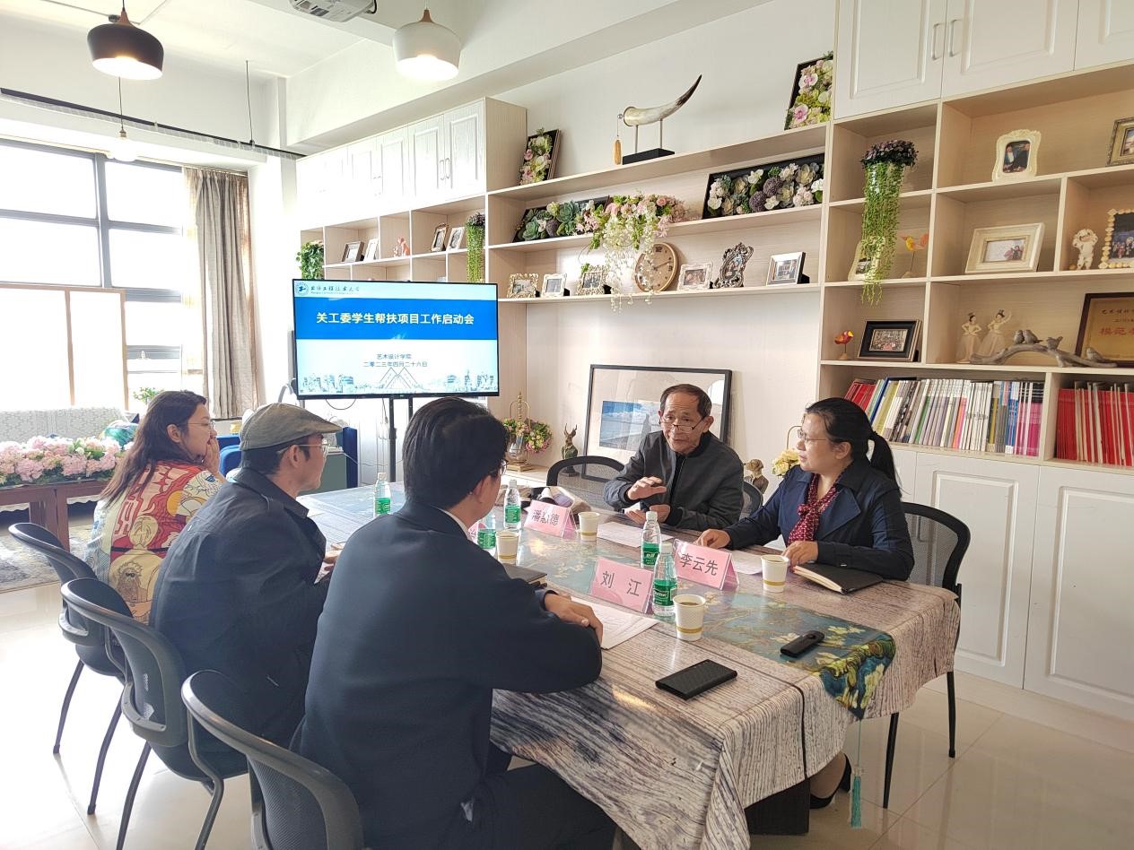 4月26日,艺术设计学院在教工小家召开关工委学生帮扶项目工作启动会,学校第二届学生帮扶项目导师、艺术设计学院原党总支书记潘惠德,艺术设计学院党委书记李云先、副书记刘江、副院长吴文治等参加会议。