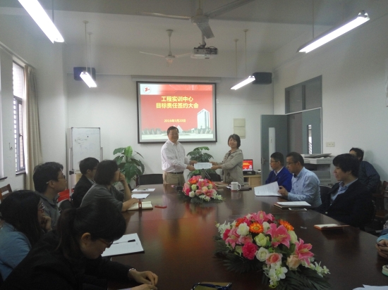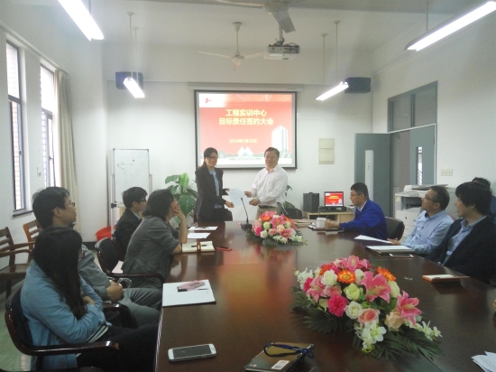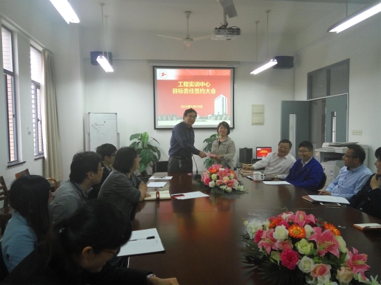 5月20日下午,工程实训中心在会议室召开党风廉政建设及年度目标责任书签约会。中心党政领导班子和全体教师参加了会议。