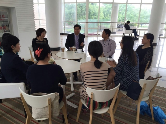讲座结束后,康教授又与部分教师进行了学术研究方面的座谈。康教授在国内、国外学术界享有很高威望,任美国科学出版集团(Science Publishing Group)应用语言学与翻译学国际期刊(International Journal of Applied Linguistics and Translation)稿件盲审专家,中国学术英语教学研究会秘书长,中国语言教育研究会常务理事,中国修辞学会理事,中国翻译协会专家会员,全国应用翻译与教学文库专家委员会委员,《解放军外国语学院学报》和《外语教学理论与实践》口译类稿件外审专家,中国汉英语比较研究会会员。