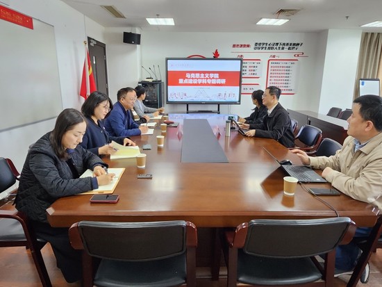 马克思主义学院院长刘志欣详细介绍了学院学科建设及“十四五”规划完成情况,学院积极推动创新团队、特色团队建设,培育优势学科及科研平台,努力实现跨机构跨学科合作,促进学科的交叉融合。