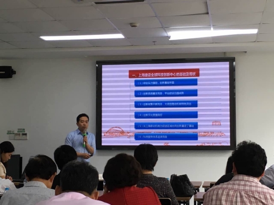 九三学社上海高校论坛第55次会议近日在上海财经大学创业实训中心举行。本次论坛的主题是“高校与上海科创中心建设”,来自上海14所高校的九三学社社员围绕这一主题进行了研讨。九三学社市委副主委程维明做总结发言,我校九三学社委员会徐滕岗、李跃文、杨陆燕、夏超文、和统战部朱良博参加了会议。会上,来自各高校的社员代表围绕高校科技成果转化、校企合作、学生创新能力、创新思维的培养和高校学科建设等做了主题发言。我校九三学社委员会李跃文老师在会上作了“上海高校加快融入科技创新中心建设的路径研究”演讲。