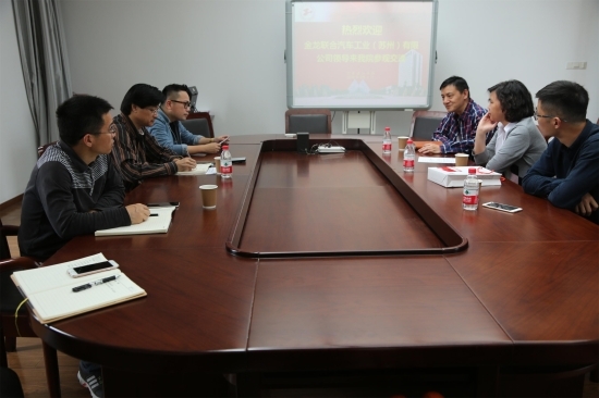 6月3日下午,艺术设计学院副院长李光安、院办主任程昭、视觉传达系副系主任姚惠以及学院产学合作教育辅导员臧文娟热情接待了金龙联合汽车工业(苏州)有限公司海格客车品牌部部长贝刚、涂装部部长邱艳一行。