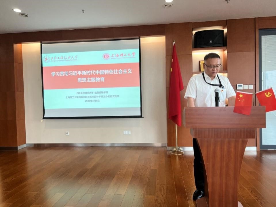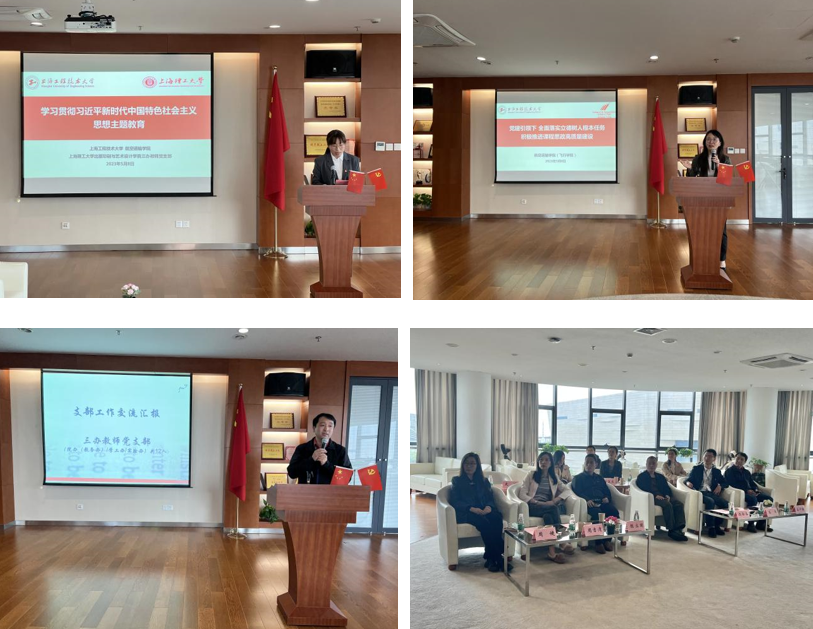 5月8日下午,为推动学习贯彻习近平新时代中国特色社会主义思想主题教育扎实开展,深化产教融合,航空运输学院与上海理工大学出版印刷与艺术设计学院(以下简称“上海理工大学版艺学院”)联合开展主题教育。上海理工大学版艺学院党委书记张华、副书记尚娅、三办教师党支部书记姜中敏等受邀来访我校。航空运输学院党委书记徐建华,副院长党淑雯以及全国样板支部(航空运输学院党委教工第三支部)党员教师出席联组学习。学习由航空运输学院党委教工第三党支部组织委员杜丽娟主持。