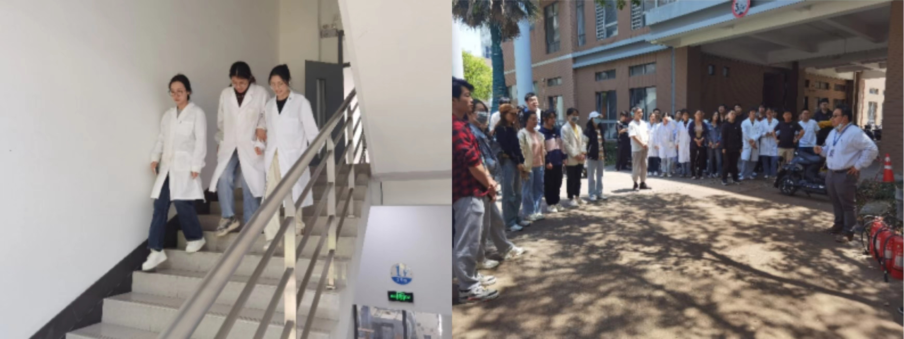 下午12点20分,演练正式开始,相关师生按照消防应急方案规定的逃生路线,迅速、有序地跑向就近消防楼梯,向楼外集合点撤离。参加活动的全体师生积极配合圆满完成了消防疏散演练活动,所有参加演习的师生在3分钟内安全撤离到指定地点,达到了预期的效果。化学化工学院实验室主任包一鸣希望学生们参与演习后,能进一步树立实验室包括消防安全在内的各项安全意识,在保障自身安全的同时,积极帮助他人。