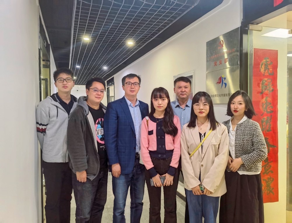 上海俊儒文化传媒有限公司是一家数字媒体方向的企业,和学院专业的粘合度较高。负责人郑昊、陈敏丽对我校的到来表示热烈欢迎,他们向来宾介绍了企业的经营模式、品牌理念、企业文化以及企业对人才的需求,并从党建标准化建设、理论学习、党建文化设计服务等方面介绍了公司整体情况。