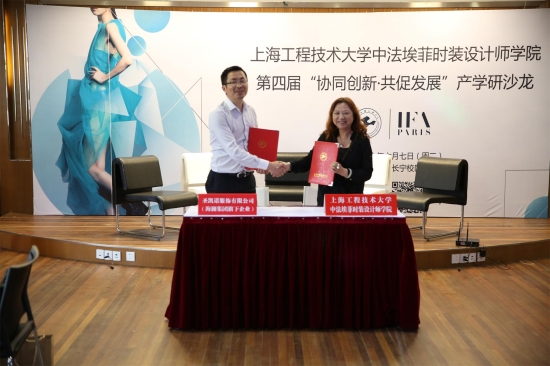 中法埃菲时装设计师学院副院长吴湘济为此次活动到场嘉宾致欢迎辞。中法学院院长周晓鸣与海澜集团旗下圣凯诺服饰有限公司上海区总经理叶国宏先生签订了产学研合作协议,双方就下一步职业装的版型研发,及入职装的高定市场开发作了更深入的合作。而服装学院党委副书记、中法学院学生工作负责人张漪与巴洛克(上海)企业发展有限公司人事总监拓红女士共同为产学研实习实践基地共建揭牌,在巴洛克今年录用了学院近10名毕业生的基础上,双方已着手开展2017年的毕业生招聘工作。
