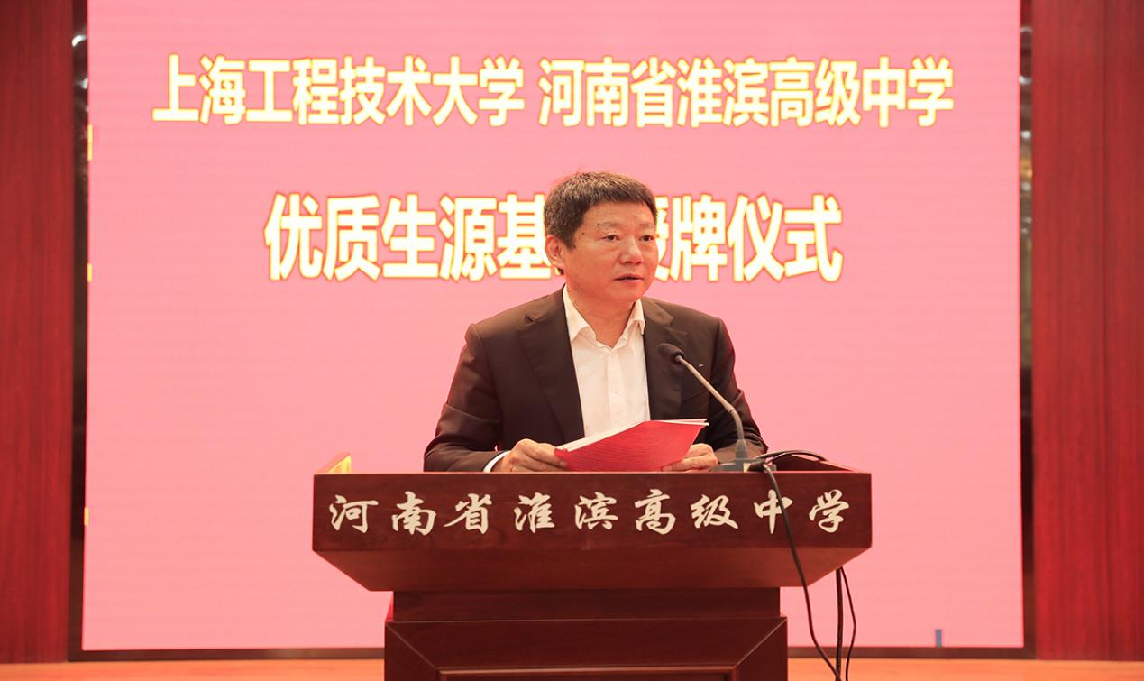 淮滨县委副书记丁春雷代表县委、县政府向关心支持淮滨教育事业发展的上海工程技术大学表示诚挚的谢意,同时向被授牌命名为上海工程技术大学“优质生源基地”的淮滨高中表示热烈的祝贺。