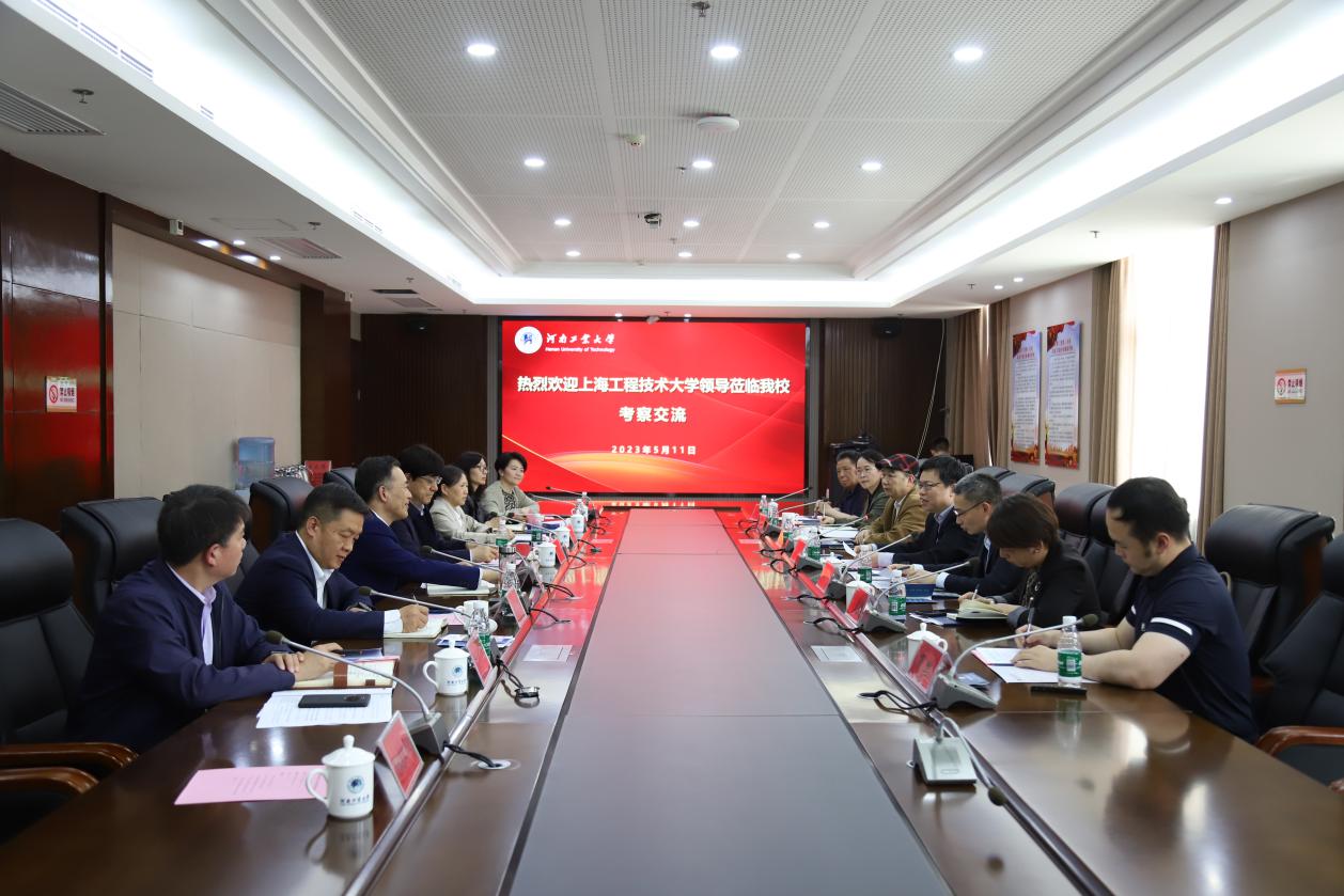 为深入开展学习贯彻习近平新时代中国特色社会主义思想主题教育,进一步做好2023年我校在河南省招生录取工作,切实加强与教育考试院的合作与交流,优化招生专业计划结构,为河南省考生提供更加优质的服务。5月11日上午,上海工程技术大学副校长夏春明一行赴河南省教育考试院交流调研。河南省政协委员联络委员会主任(原河南省教育厅厅长)郑邦山、河南省教育考试院院长董学胜、副院长于文等热情接待了我校一行。河南省教育考试院普招处处长陈大琪、命题与评价中心主任李进栓,我校教务处处长饶品华、航空运输学院(飞行学院)院长何法江、招办主任周慧艳、航空运输学院(飞行学院)副院长党淑雯等参加会议。
