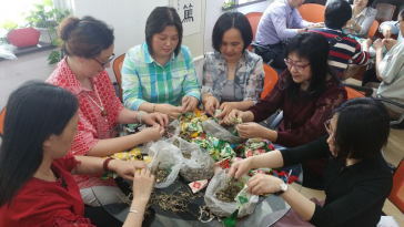 6月6日中午,在学院教工之家里,女工们聚集在一起开始制作香袋,大家把采购来的药材一点点装进香囊,在制作的过程中,大家边做边回忆起儿提时代的往事,纷纷沉浸在童年的喜悦和快乐中,同时也憧憬着美好的未来。整个妇女之家都充满了和谐、欢乐的气氛;一个个端午香袋在大家的手中完成。