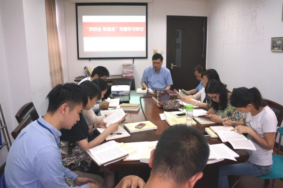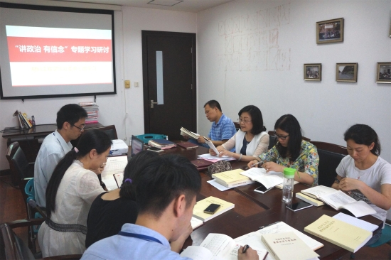 研讨会在中心组成员以逐字逐句逐段诵读接龙的形式集中学习《中国共产党章程》总纲和习近平总书记关于“实现中华民族伟大复兴的必由之路——关于坚持和发展中国特色社会主义”的重要讲话精神后,围绕“讲政治、有信念”开展专题讨论,院长于治水和党委书记陆展华联系工作、思想和作风实际先后作了重点发言,其他与会人员作了交流发言。