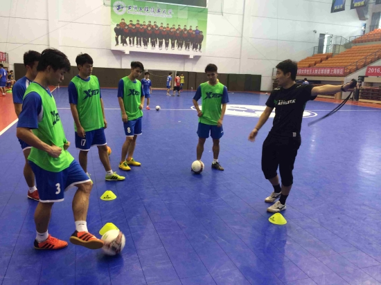 “分球!”、“直接射门”、“注意防守”……上海工程技术大学的体育馆里,有近20名运动员在教练薛志强的带领下训练,教练的指令以及球员们与地板的摩擦声在体育馆内此起彼伏。他们积极训练,和往常没有丝毫区别。熟不知,球员们就在前不久代表中国出站第32届泛波罗的海世界大学生运动会五人制足球赛,还突破性地取得了亚军的成绩。