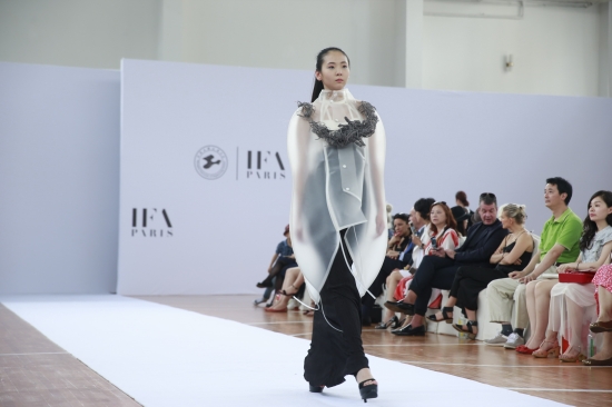 6月19日,中法埃菲时装设计师学院2016届毕业生设计作品秀(家长场)在长宁校区综合楼二楼篮球馆上演。上海工程技术大学副校长史健勇,中法合作办学项目理事长顾思明,学院外方院长柴立伟,中方院长周晓鸣,以及广大学生及家长参与本次毕业秀。250余人的场地座无虚席。