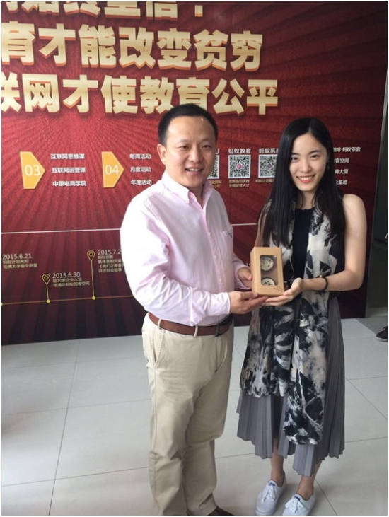 城市轨道交通学院毕业生党员莫荥作为学生代表向蚂蚁创客空间赠送了一只蚂蚁纪念品,并送上 “为蚂蚁雄兵加油,为创业者点赞”的祝福。他激动地说:“于总提到的一群蚂蚁改变中国教育,这句话对我来说印象尤其深刻。马上我也将走上讲台,成为中国教育事业的一份子。我相信千千万万小蚂蚁汇聚在一起可以用自己的力量改变中国教育。”