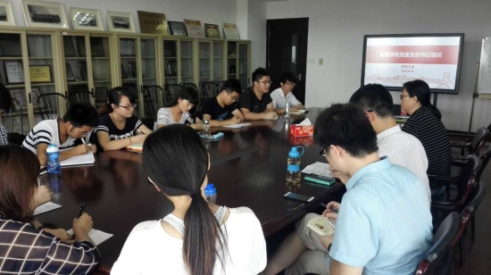 为贯彻落实《关于在全体党员中开展“学党章党规、学系列讲话,做合格党员”学习教育方案》精神,推进“两学一做”学习教育深入开展,进一步发挥基层党组织的战斗堡垒作用,提高党支部在思想引领、工作学习、科学研究中的先锋作用,提升党支部生活质量和党支部书记的责任意识、工作能力与业务素质,6月22日下午,管理学院党委在行政楼712举行了新上任的党支部书记(委员)培训班的开班仪式,学院党委员书记吴清老师,组织员丁红娟老师,以及学院近期新上任的党支部书记和委员参加了此次培训。