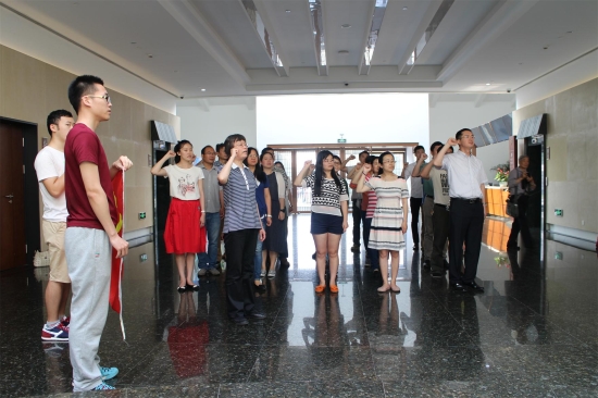 在学院党委书记周洁的带领下,师生党员在党旗和陈云同志的雕像前重温了入党誓词,不忘入党初心。“我志愿加入中国共产党,拥护党的纲领,遵守党的章程……”,在鲜红的党旗下,各位党员高举右手庄严宣誓。
