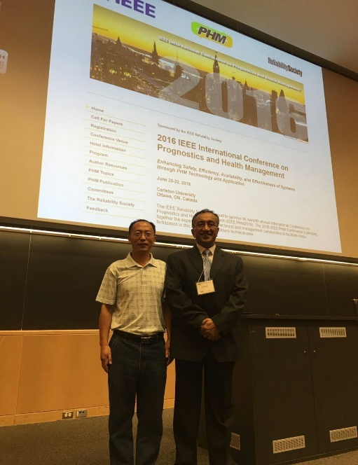 6月20 至22日,第七届故障预测与健康管理国际学术会议(PHM-2016)在加拿大卡尔顿大学召开。此次会议由IEEE可靠性协会倡导,由东华盛顿大学、马里兰大学和卡尔顿大学主办。电气学院滕旭东老师应邀出席此次会议,并与瑞典哈姆斯塔德大学Mr. FAN Y.T等一同作题为“Evaluation of Micro-flaws in Metallic Material Based on A Self-Organized Data-driven Approach”学术报告。Mr. Fan Y.T为此设计了展示海报,并在现场仔细讲解数据处理过程和应用实例。