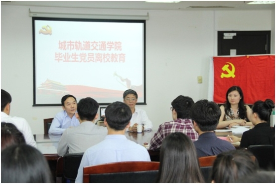 为进一步提高毕业生党员党性觉悟,增强党员奉献服务意识,6月28日,城市轨道交通学院在行政楼1112室举行了“两学一做,梦想起航”毕业生党员专题教育活动。学院党总支书记刘牧众,院长柴晓冬及全体毕业生党员参加了本次活动。