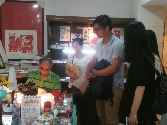 参观过程中,上海工艺美术博物馆内,上海地区的非物质文化遗产的传承人现场制作工艺品,令同学们大开眼界。细致的牙雕、古朴的上海绒绣、海派面塑等等令同学们惊叹。玉石工艺师现场进行玉石雕刻、剪纸艺术家现场画稿,吸引了同学们的目光,韩国籍的尹同学表示第一次欣赏到手工艺品的制作过程,对非遗传承人的创作工具、设备都充满了好奇。