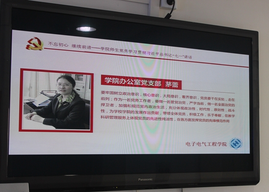 近日,学院师生党员不断学习贯彻习近平总书记“七一”讲话,就讲话中“不忘初心 继续前进”的内容纷纷发表了自己的看法。学院党委把大家的感言放到学院宣传电视屏上滚动播放,引起了大家的关注。