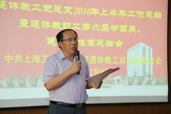 退休教工党总支书记沈海庆总结了退休教工党总支在开展“‘两学一做’、加强党建”,“以建党95周年等重大节庆为契机,充分发挥退休教工党总支战斗堡垒作用”,“创新举措、突出重点、做好为老同志服务,努力提高退休教工党总支活力”,“加强队伍建设,充分发挥教工党总支自我管理”四个方面总结了退休教工党总支2016年上半年工作。退休教工党总支副书记唐国耀对退休教职工第六届书画展、2016年退休教职工健身趣味赛进行了总结。