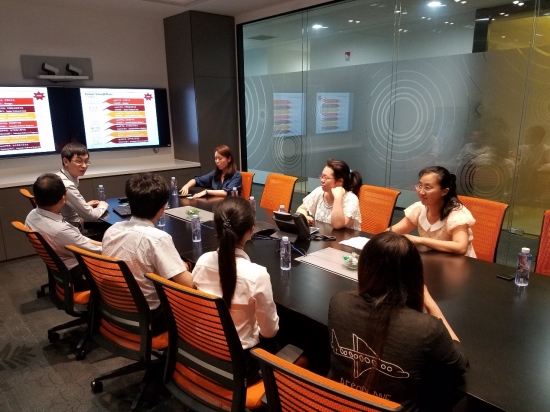 一行走访了位于金科路张江高科技园区的国际四大会计师事务所之一——普华永道会计师事务所IT部,普华永道信息技术(上海)有限公司,受到公司招聘主管谢小康、人事专员jessica的热情接待。谢主管对学院领导和老师前来走访表示欢迎,感谢学院为企业输送的优秀毕业生。随后,谢主管简单介绍了企业2016年的招聘情况,2016年学院有4名毕业生经过公司严格的层层筛选,进入公司工作。谢主管也表示公司每年对人才的需求数量较大,希望能与学院进行更深入的长期合作。秦副书记对企业给予学院的大力支持表示感谢,感谢企业为学生们提供的学习和工作平台以及对他们的悉心培养,并希望与公司建立更有效的育人机制和平台,期望双方合作更持久,合作领域进一步扩大。秦副书记对在座的毕业生们也给予殷切的期望,期望他们多跟企业带教老师、老员工虚心学习,多努力,不断提升自己,尽快融入企业。随后,双方就大学生科创、联合育人等方面与普华永道的合作进行了深入细致的探讨。